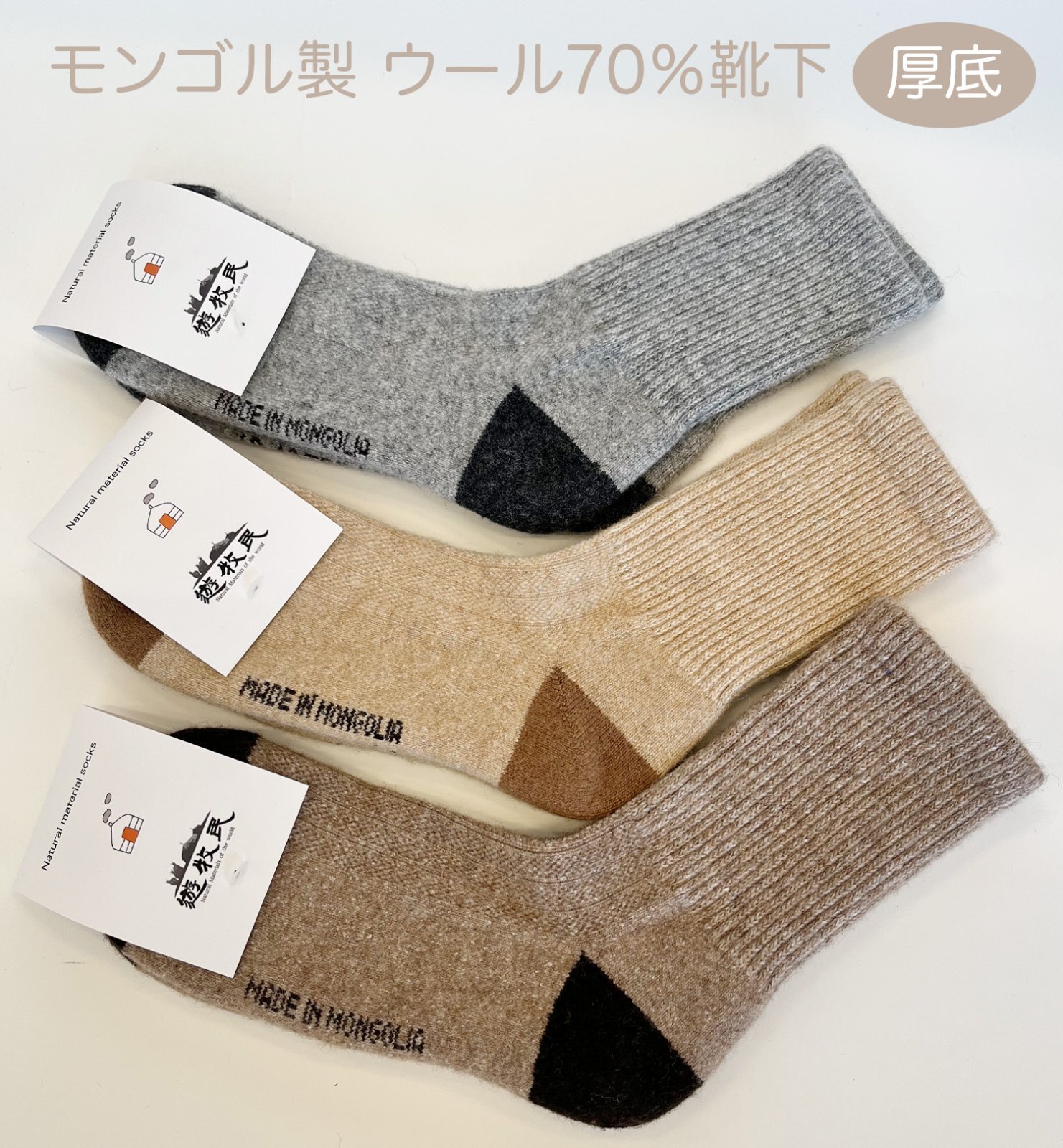ウール70%厚底の靴下
